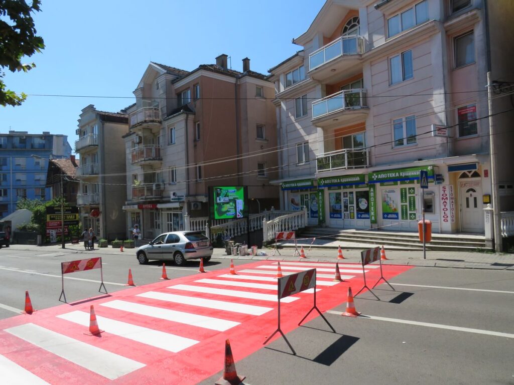 obnova i farbanje pešačkih prelaza sa crvenom podlogom u Zmaj Jovinoj ulici kod