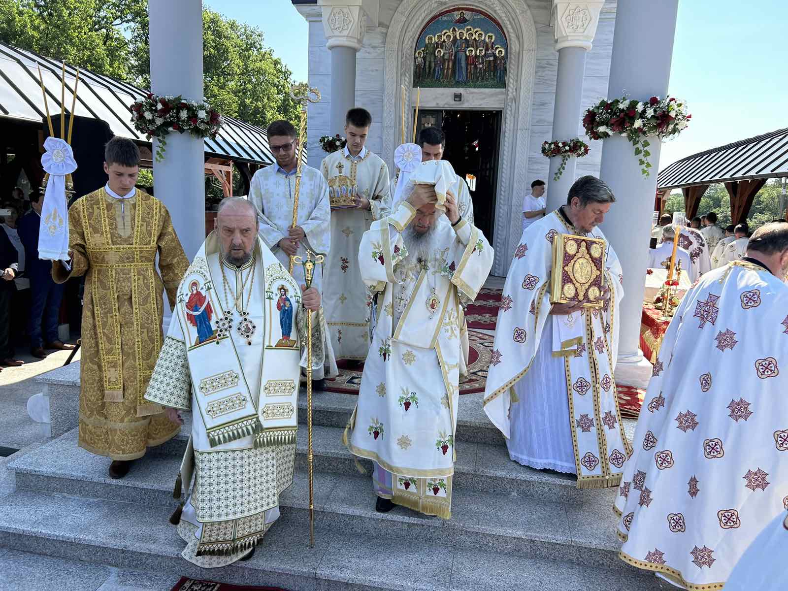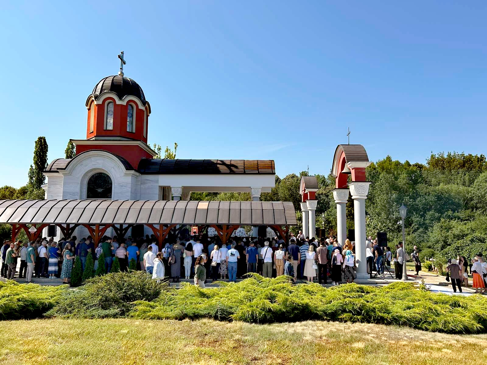 Episkop šumadijski Jovan uz sasluženje umirovljenog episkopa Zvorničko-tuzlanskog i nekadašnjeg Administratora Eparhije šumadijske Vasilija Kačavende, osveštao je danas hram posvećen Svetim novomučenicima kragujevačkim u Spomen parku u Šumaricama.