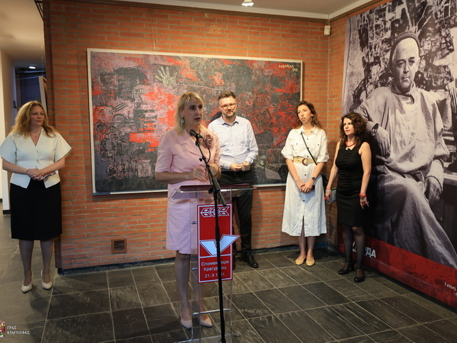 Marijana Stanković, direktorka Spomen parka Kragujevački oktobar zahvalivši se autorima na saradnji povodom obeležavanja godišnjice smrti, je istakla da pažljivo birana i retko izlagana umetnička dela, konceptualno i po obimu korenspodiraju sa duhom ciklusa slika „Kragujevac 1941“ koji je slikar posvetio kragujevačkoj tragediji i poklonio krajem 60-tih godina.