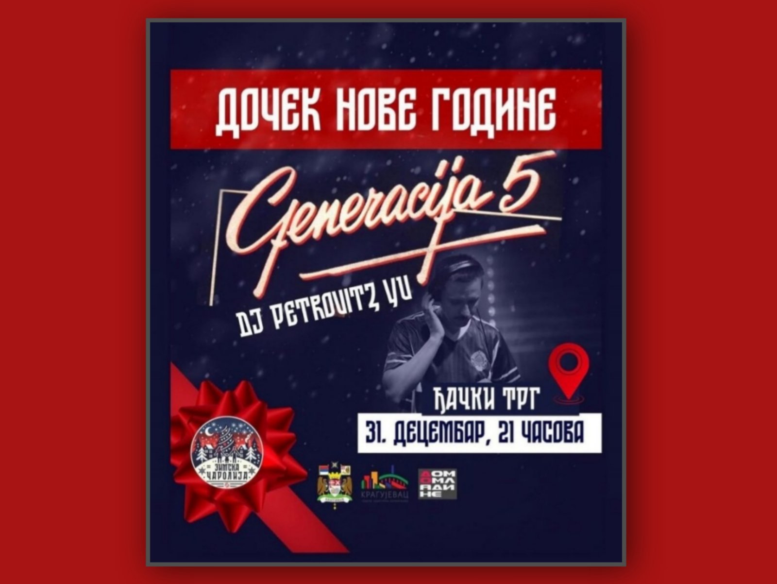 Bogat program pripremio je Dom omladine u Kragujevcu za dane praznika. Novogodišnju noć obeležiće, pored ostalih, nastup Generacije 5.