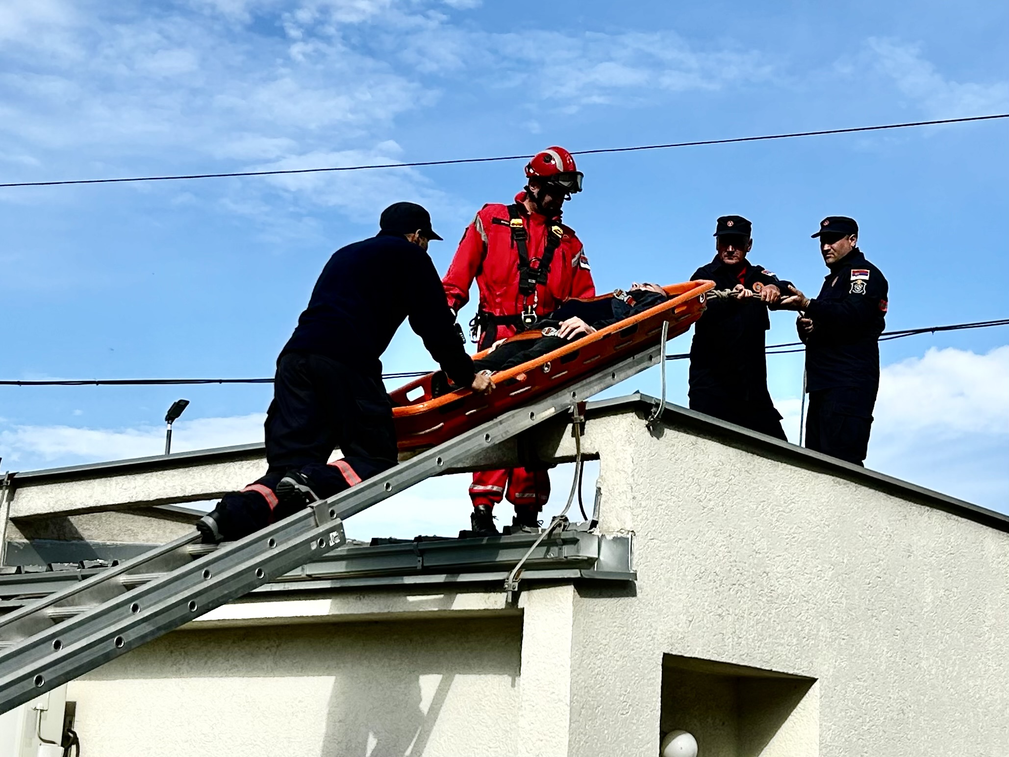 Danas su spasilački timovi prikazali evakuaciju povređenih iz ruševina alpinističkim metodama klizača i šarke.