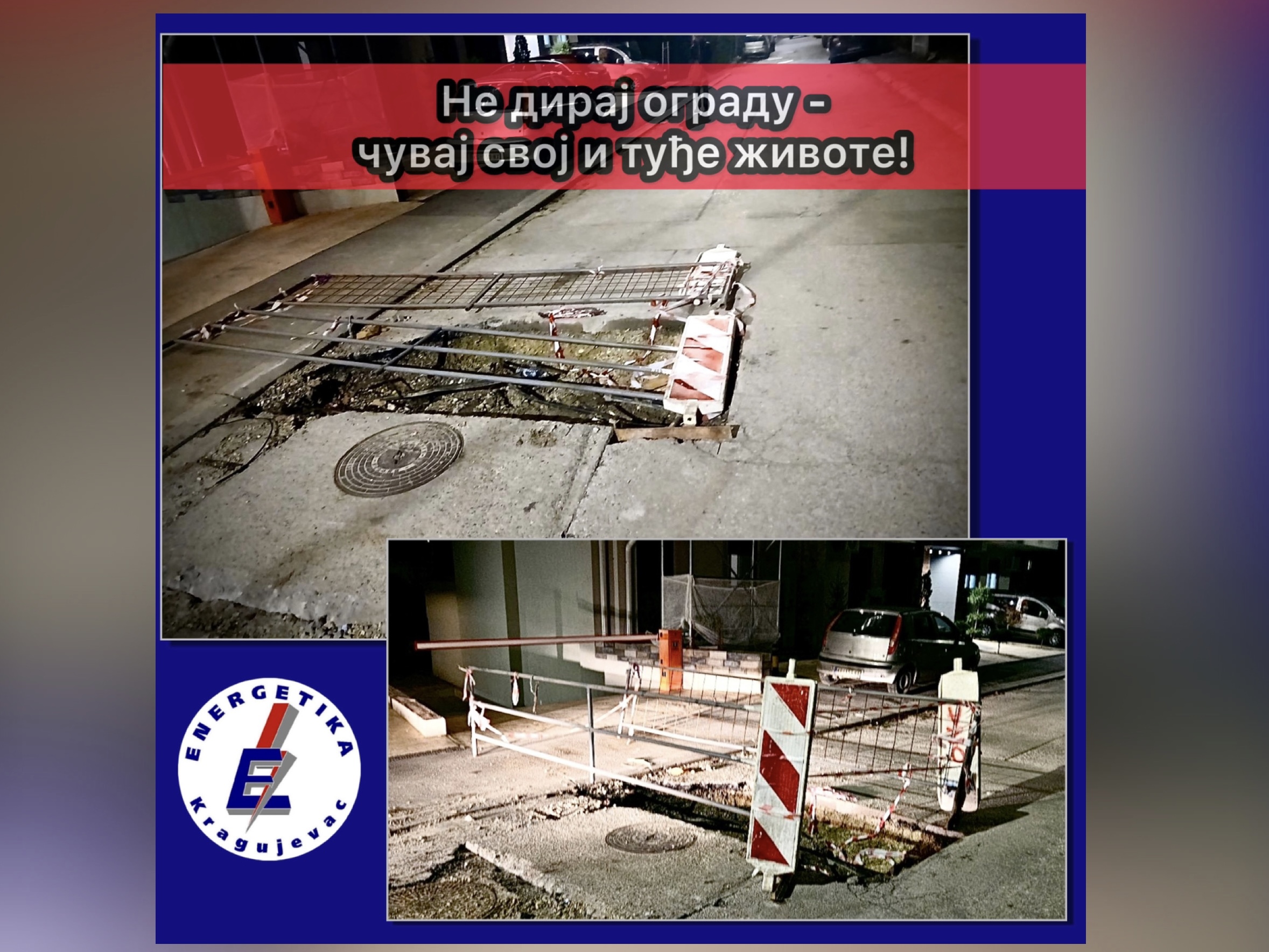 “ Upozoravamo sve sugrađane da ne uklanjaju zaštitne ograde, trake i oznake, jer su one tu radi zaštite života i imovine. Odgovornim ponašanjem čuvamo sopstvenu bezbednost i bezbednost svojih komšija”, apeluje Energetika d.o.o.