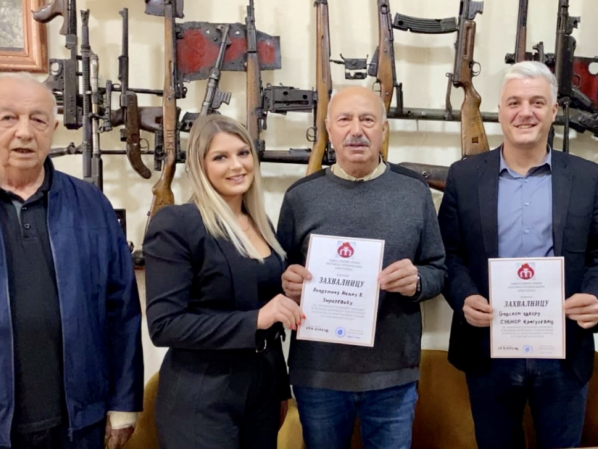 KRAGUJEVAC – U znak priznanja za dugogodišnju humanost i doprinos unapređenju položaja slepih i slabovidih osoba, Savez slepih Srbije i Balkana uručio je visoka priznanja SUBNOR-u Kragujevca i Šumadije, kao i predsedniku ove organizacije, akademiku puk. Željku V. Zirojeviću.